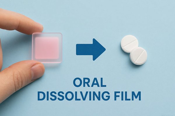 Methods: Simulated saliva pH 6.8 at 37 °C; USP paddle 50 rpm, 300 mL medium; film clamped to fix wetted area. Mechanics on UTM at 23 °C/50%RH. Accelerated stability 40 °C/75%RH.